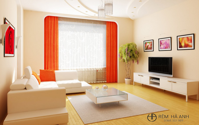 - Màu cam giúp dễ dàng chấp nhận thay đổi, tạo cảm giác thoải mái và cung cấp năng lượng. Rèm cửa màu này có thể được treo trong các phòng, đó là nơi mà mọi thành viên trong gia đình tụ họp. Màu cam đặc biệt thích hợp cho nhà bếp, vì màu sắc giúp cải thiện tiêu hóa, và mang lại sự thoải mái. Tuy nhiên, rèm cửa màu cam không được khuyến khích trong phòng ngủ, vì nó quá kích thích.