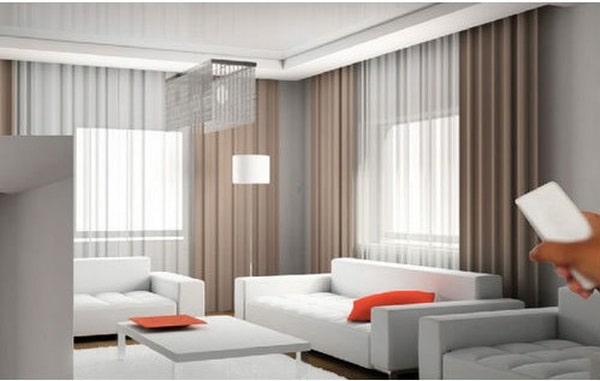 Với những căn hộ cửa sổ lớn thì gia chủ có thể hướng đến rèm cửa tự động là thích hợp và cân đối nhất. Chiếc rèm này hoạt động cực kỳ thông minh thông qua một bộ vi xử lý, tích hợp tương đối nhiều tính năng hiện đại. Được điều khiển bằng bộ romote từ xa. Mỗi khi bạn muốn đóng – mở rèm chỉ cần ấn vào đó là nó có thể tự hoạt động, cực kỳ tiện lợi. Loại rèm này chủ yếu được thiết kế theo âm tràn và thường sử dụng 2 lớp. Lớp bên ngoài là lớp chính, ngoài ra còn có một lớn voan mỏng, nhẹ hơn với tone màu hồng nhạt hoặc màu kem như để nhấn nhá, tăng thêm ấn tượng.