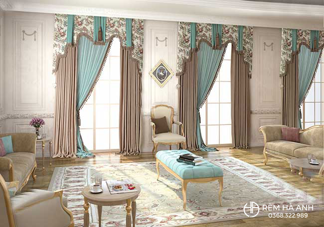Nghệ thuật trang trí rèm biệt thự sẽ mang đến cho người nhìn sự thu hút và ấn tượng đầu tiên. Một căn biệt thự mang phong cách Châu Âu sẽ sử dụng những gam màu rèm sáng và tông ánh kim, thường sử dụng vải thổ cẩm nặng, nhung hay vải voan trong suốt nhẹ nhàng với những nếp gấp mượt mà , những loại rèm vải 2 lớp thường được dùng trong các căn biệt thự sang trọng với những hoa văn tinh tế mang lại nét đặc trưng tao nhã một cách cổ điển.