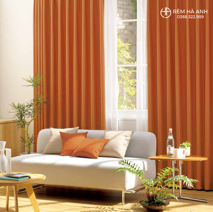 Nếu bạn ngại sử dụng rèm màu cam vì quá chói và nổi bật thì cam đất là một phiên bản tinh tế và sang trọng hơn nhiều. Màu cam đất không quá nổi bật nhưng vừa đủ để là điểm nhấn ấn tượng trong không gian của bạn. Màu này sẽ giúp căn phòng trở nên hiện đại, trẻ trung và thanh lịch.